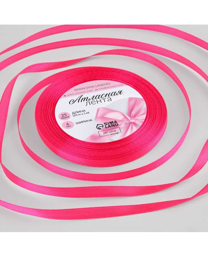 Лента атласная, 6 м ×23 ± 1 м, цвет неоновый розовый № 14 - товары для кондитеров.