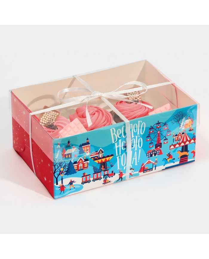 Коробка для 6 капкейков «Новогодние каникулы», 23×16×10 см - товары для кондитеров.