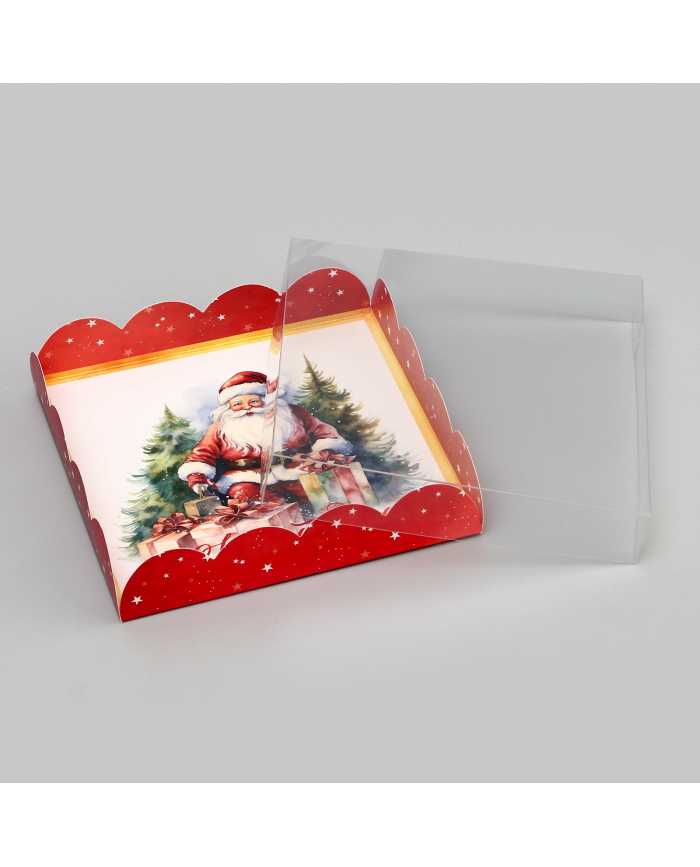 Коробка для печенья «Дед Мороз», 15 х 15 х 3 см, PVC крышка - товары для кондитеров.