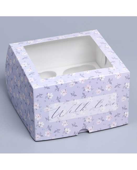 Коробка на 4 капкейков с окном «With love», 16х16х10 см - товары для кондитеров.