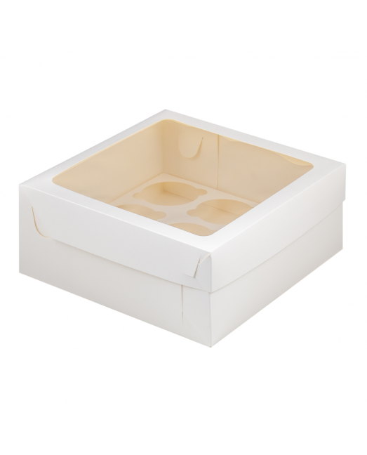 Упаковка 23,5х23,5х10 см, на 9 капкейков, с окном, белая